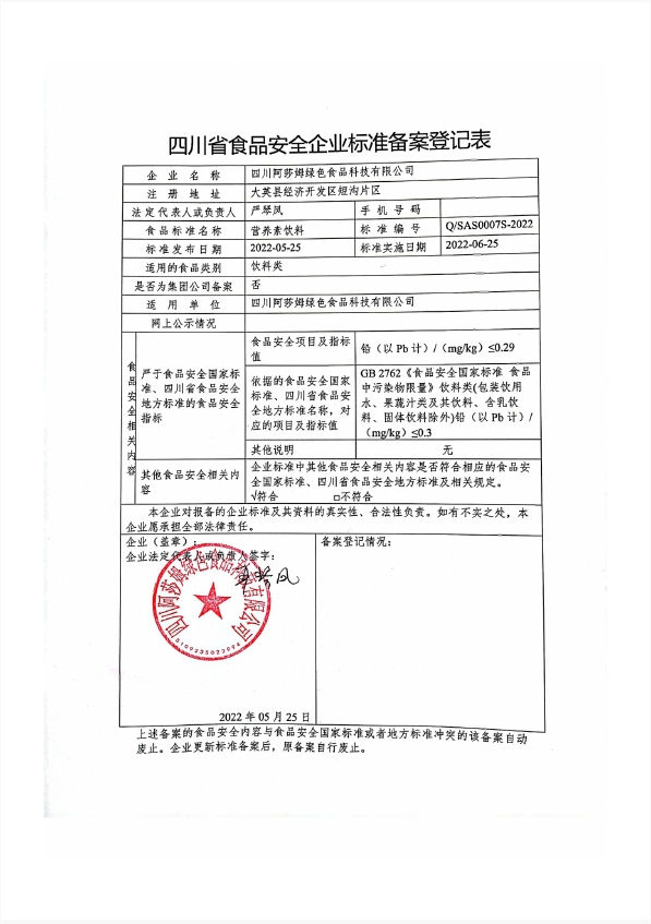 四川阿莎姆绿色食品科技有限公司——营养素饮料(公示截止期2022年6月27日)