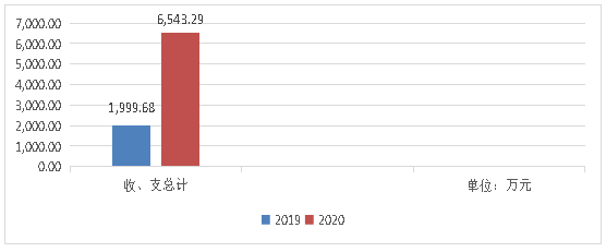 2020年度收、支6543.29万元。与2019年相比,收、支总计各增加4543.61万元,上涨227.22%。主要变动