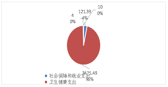 2020年一般公共预算财政拨款支出3674.33万元,主要用于以下方面:社会保障和就业(类)支出121.39万元,占3.30%;卫生健康支出3475.49万元,占95%;资源勘探工业信息等支出10万元,占0.27%;灾害防治及应急管理支出4万元,占0.11%;住房保障支出63.44,占1.32%。