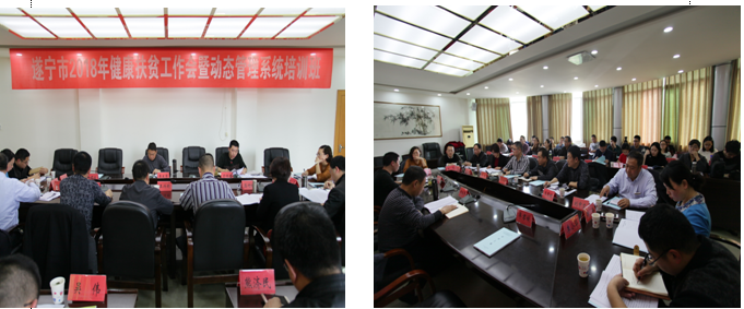 会议传达了习近平总书记来川视察指导重要讲话精神、传达了全市脱贫攻坚会议和四川省卫生计生委健康扶贫“春季攻势”启动会暨动态管理系统培训班会议精神;学习了《四川省卫生和计划生育委员会关于印发开展卫生计生扶贫领域作风问题专项治理实施方案的通知》、《2018年全省健康扶贫“春季攻势”工作方案》等文件。市中心医院工程师冯佳杰、蓬溪县卫计局纪委书记刘志军分别就全国健康扶贫动态管理系统功能、全国健康扶贫动态管理系统操作手册和操作指南进行了培训。同时,各县(区)卫计局、国开区社会事业局、市直医院分别就2017年健康扶贫工作总结,2018年工作安排部署作了交流发言。