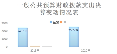 2020年一般公共预算财政拨款支出2565.34万元,占本年支出合计的100%。与2019年相比,一般公共预算财政拨款增加128.16万元,增长5.26%,其中:基本支出增加102.65,项目支出增加25.51,主要变动原因是人员经费按规定调整。