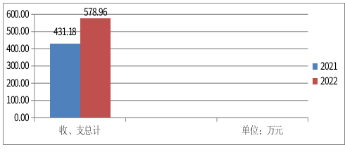 2022年度收、支总计578.96万元。与2021年相比,收、支总计各增加147.78万元,增加27.53%。主要120指挥调度系统运行经费项目、突发事件应急处置及应急物资经费、设备购置经费三个项目。