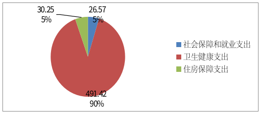 2022年一般公共预算财政拨款支出548.24万元,主要用于以下方面:社会保障和就业(类)支出26.57万元,占4.85%;卫生健康(类)支出491.42万元,占89.64%;住房保障(类)支出30.25万元,占5.51%。