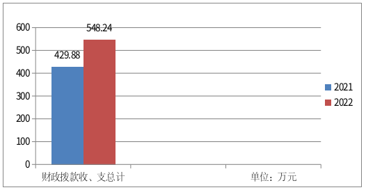 2022年财政拨款收、支总计548.24万元。与2021年相比,财政拨款收、支总计各增加81.76万元,增加23.49%。主要变动原因新增采购应急服装及物资储备、做好医疗救治、隔离管控等疫情防控项目及9.20疫情防控一线工作人员安排酒店住宿及餐费费用。