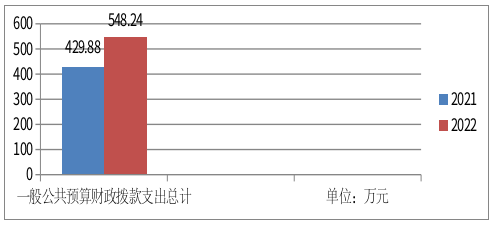 2022年一般公共预算财政拨款支出548.24万元,占本年支出合计的100%。与2021年相比,一般公共预算财政拨款支出增加118.36万元,增加27.53%。