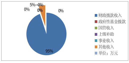 2022年本年收入合计578.96万元,其中:一般公共预算财政拨款收入548.24万元,占94.69%;政府性基金预算财政拨款收入0万元,占0%;国有资本经营预算财政拨款收入0万元,占0%;上级补助收入0万元,占0%;事业收入0万元,占0%;经营收入0万元,占0%;附属单位上缴收入0万元,占0%;其他收入30.72万元,占5.31%。