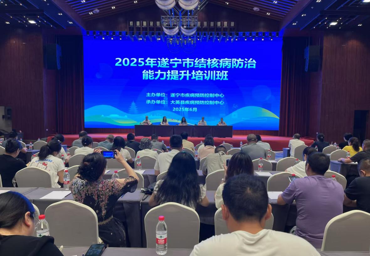 为强化结核病防控,提升防治工作水平,2025年6月24-25日,由市疾控中心主办的全市结核病防治能力提升培训班在大英县顺利举办。市卫生健康委、市疾控中心及大英县卫健局相关领导出席开幕式并致辞,各县(市、区)疾控中心分管领导、业务骨干,结核病定点医疗机构门诊医生,市直园区基层医疗机构结防人员,以及大英县辖区基层医疗机构、学校相关人员参加培训。本次培训特别邀请省疾控中心结防所及市第四人民医院相关专家授课。