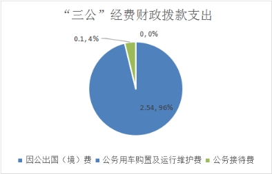2020年“三公”经费财政拨款支出决算中,因公出国(境)费支出决算0万元,占0%;公务用车购置及运行维护费支出决算2.54万元,占96.21%;公务接待费支出决算0.10万元,占3.79%。具体情况如下: