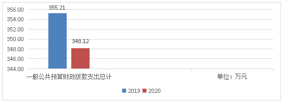 2020年一般公共预算财政拨款支出348.12万元,占本年支出合计99.28%。与2019年相比,一般公共预算财政拨款减少7.09万元,下降1.99%。主要变动原因是19年有结转18年项目支出及20年物业管理费、设施设备及伙食补助费在日常公用经费中列支。