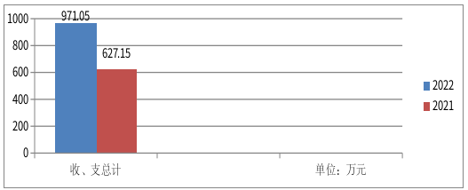 2022年度收、支总计971.05万元。与2021年相比,收、支总计各增加343.90万元,增长54.84%。主要变动原因:一是机构改革后人员增加,工资及保险费用增加,二是执法区域扩大,专项资金略有增加。