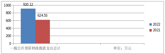 2022年一般公共预算财政拨款支出920.12万元,占本年支出合计的94.76%。与2021年相比,一般公共预算财政拨款支出增加295.57万元,增长47.33%。主要变动原因:主要变动原因:一是机构改革后人员增加,工资及保险费用增加,二是执法区域扩大,专项资金略有增加。