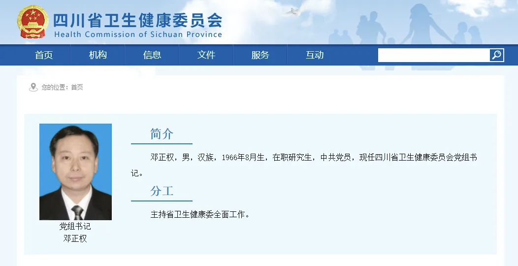 据四川省卫生健康委员会网站消息,邓正权已任四川省卫生健康委党组书记,主持省卫生健康委全面工作。