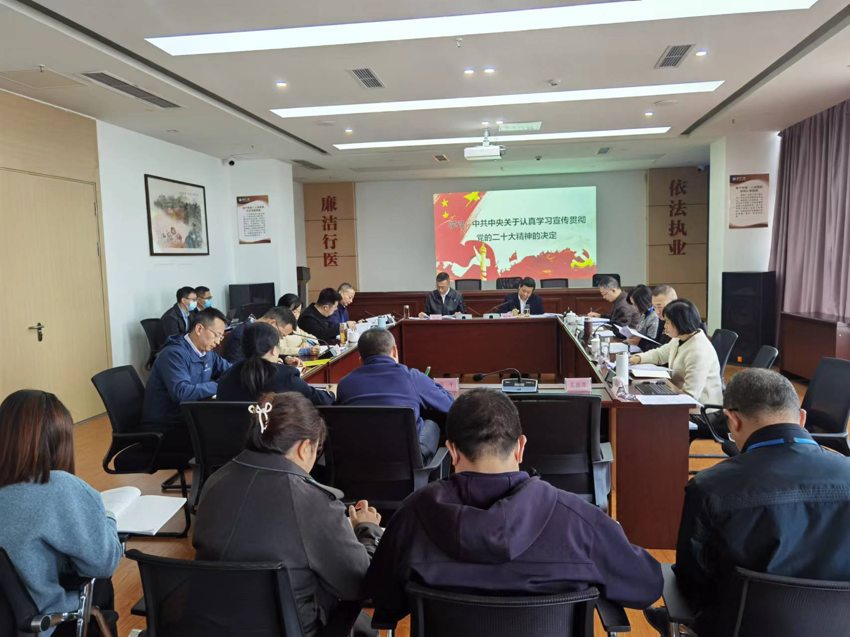 11月14日上午,遂宁市第一人民医院党委在高新院区问廉室组织召开学习宣传贯彻党的二十大精神专题党委会。医院领导班子、各党支部书记、各医管中心主任和党办、宣传等部门负责人参加会议,会议由党委书记侯勇主持。