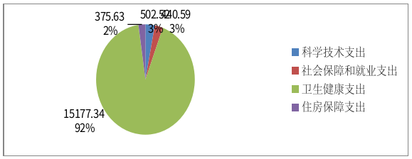 2022年一般公共预算财政拨款支出16496.08万元,主要用于以下方面:科学技术支出502.52万元,占3.05%;社会保障和就业支出440.59万元,占2.67%;卫生健康支出15177.34万元,占92.01%;住房保障支出375.63万元,占2.27%。