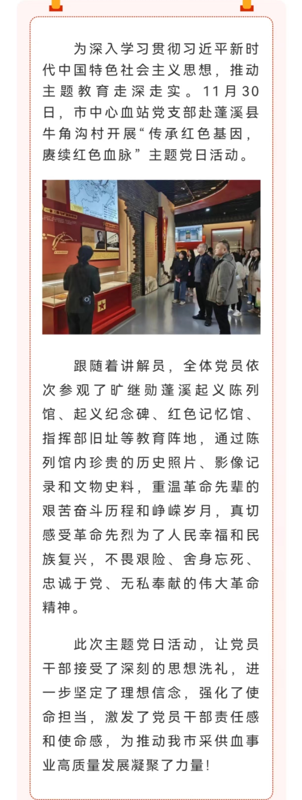 传承红色基因 赓续红色血脉——市中心血站党支部开展主题党日活动