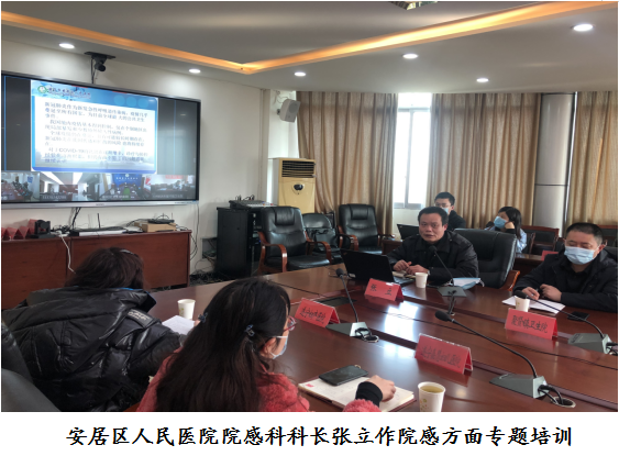 会上,市卫生健康委基层卫生与妇幼健康科科长郑栋才传达了全省农村地区疫情防控工作电视电话会议精神。安居区人民医院院感科科长张立作了院感方面专题培训。
