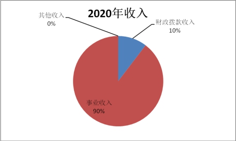 2020年本年收入合计5075万元,其中:一般公共预算财政拨款收入526.07万元,占10%;事业收入4548.86万元,占90%;其他收入0.96万元。