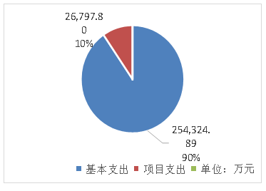 2020年本年支出合计281,122.69万元,其中:基本支出254,324.89万元,占90.46%;项目支出26,797.80万元,占9.54%。