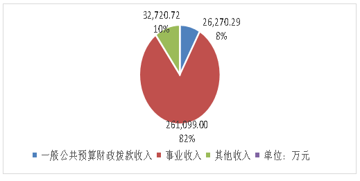2020年本年收入合计320,090.01万元,其中:一般公共预算财政拨款收入26,270.29万元,占8.21%;事业收入261,099.00万元,占81.57%;其他收入32,720.72万元,占10.22%。