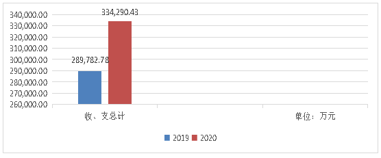 2020年度收、支总计334290.43万元。与2019年相比,收、支总计各增加44,507.65万元,增长15.95%。主要变动原因:1.2020年受疫情影响,中央、省级、市级财政对防疫工作加大资金投入,2.下属医疗机构事业收支平稳增加。