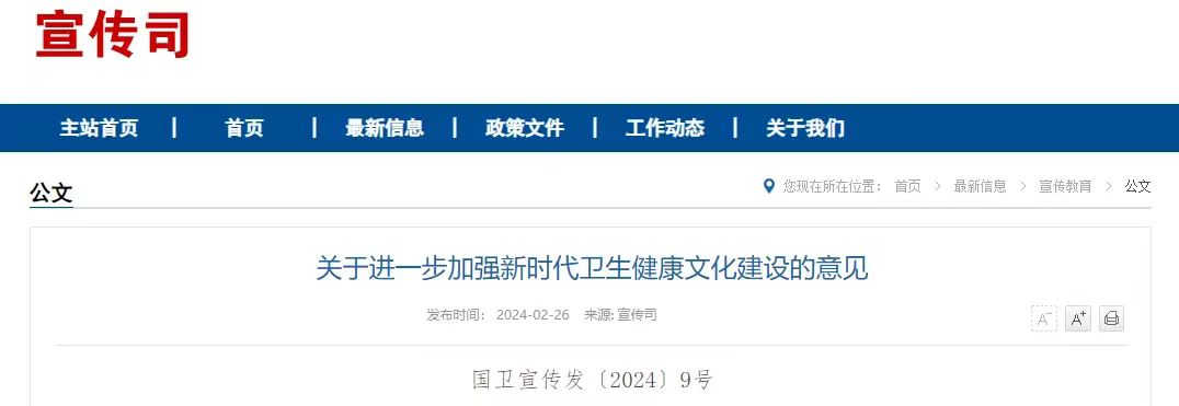 三部门发布《关于进一步加强新时代卫生健康文化建设的意见》